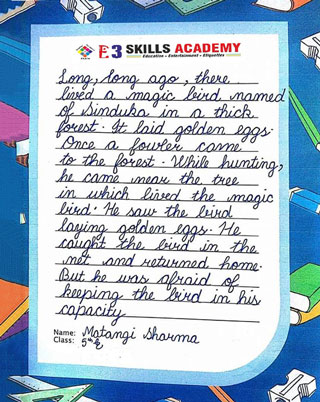 Our specially designed course teach the students "How to Write" and the various techniques involved in good handwriting that includes Proper positioning of the pen, Proper posture, how to keep notebook, position of the hand, how to use different kind of pens and more importantly coordination of brain, eyes and hands.